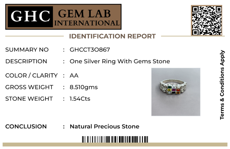 Every certified gemstone comes with a premium laminated certificate card containing all details, along with a QR code for instant online verification on our website.